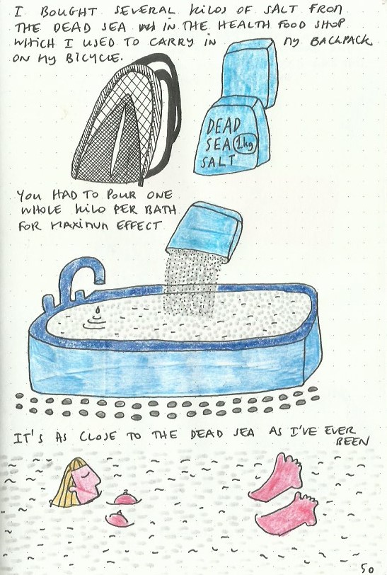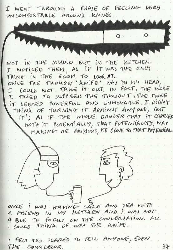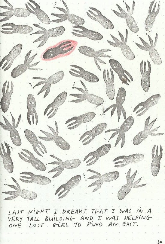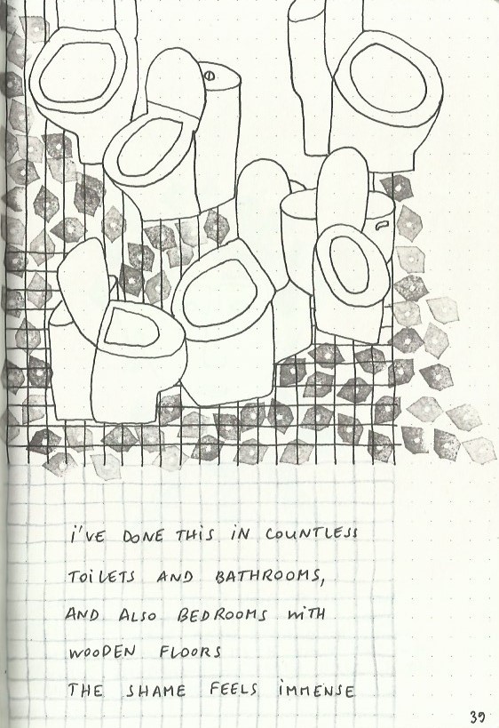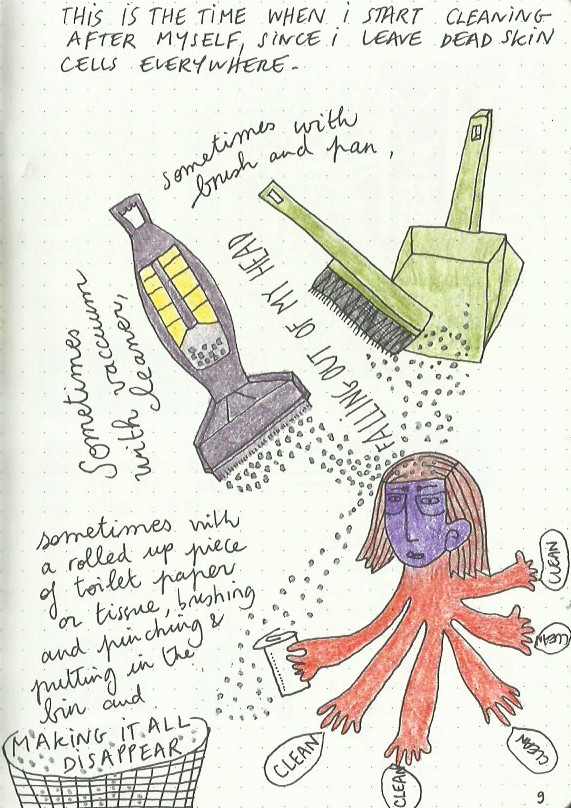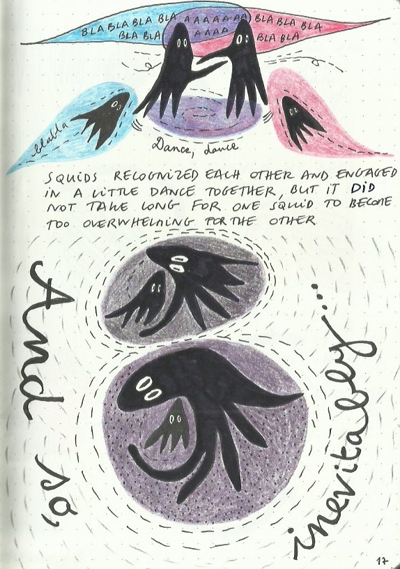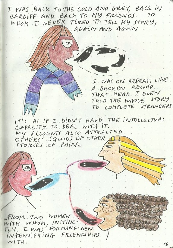I write and draw simultaneously and spontaneously, nothing is planned and sometimes the words lead the drawings and sometimes the drawings lead the words. Often, I make discoveries and remember forgotten memories.