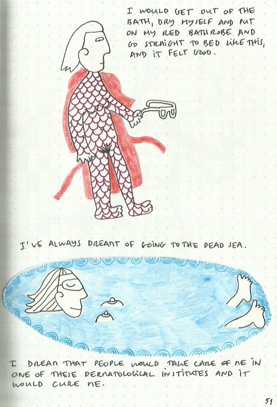 This volume focuses on episodes behind and around what I remember as my first major psoriasis crisis. It starts with a story of geographic displacement. The visual and narrative explorations follow a loose chronological order.