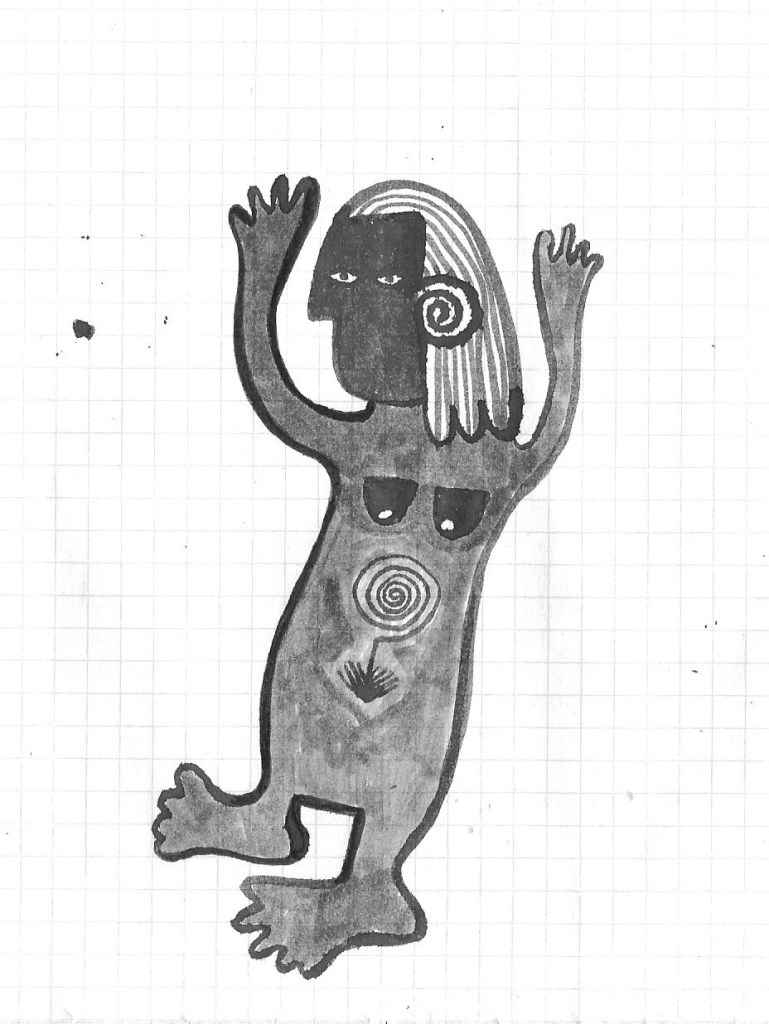 It visually echoes primitive forms of representation of deities and spirits (see petroglyphs) and I feel compelled to explore it further, to replicate its image, similar to the way images of religious figures find their way in everyday life and are represented indefinitely without losing their sacred essence.
