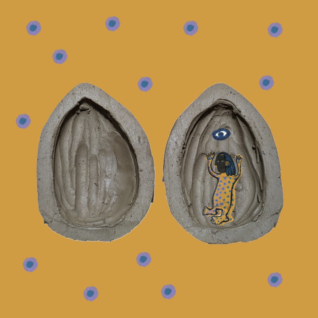 (2021) The making of the skin doll prompts a reflection on where to place this object of importance. I research miniature and portable shrines from around the world. Some are deep like boxes, many carry visual narratives. Many of them are also triptychs. In my research, I also come across a portable shrine reinvented for modern times, although the case used is almost already an artefact of the past in 2024.