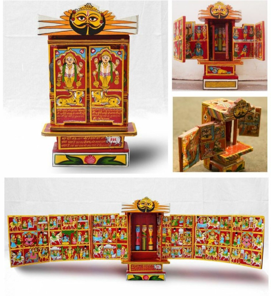 Of all the portable shrines, the polyptych kawad shrine from Rajasthan is the most fascinating to me. It is a narrative device that lets the story-teller hide and reveal multiple panels as he or she narrates the religious tales.