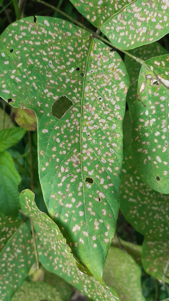 I observe the leaves on plants, so many are imperfect. I think the unity with the natural world and start questioning beauty and ugliness.