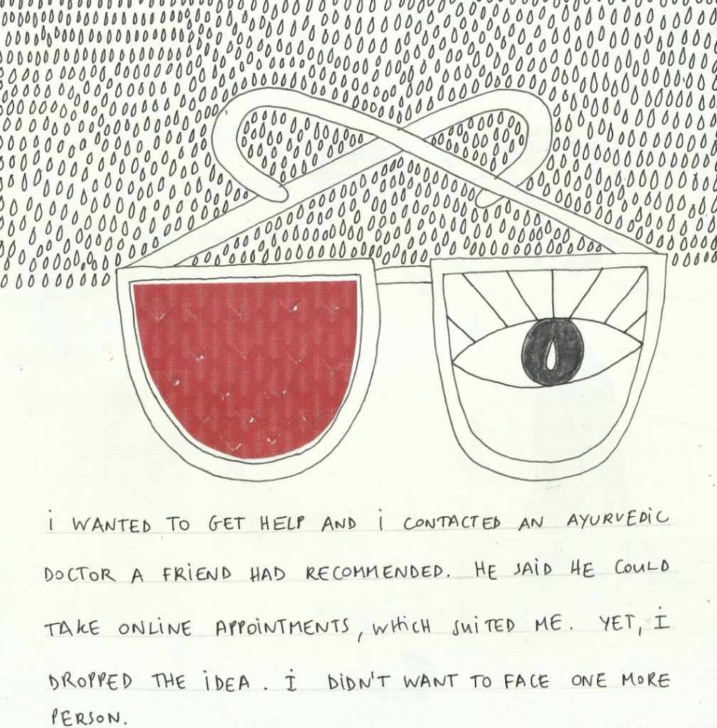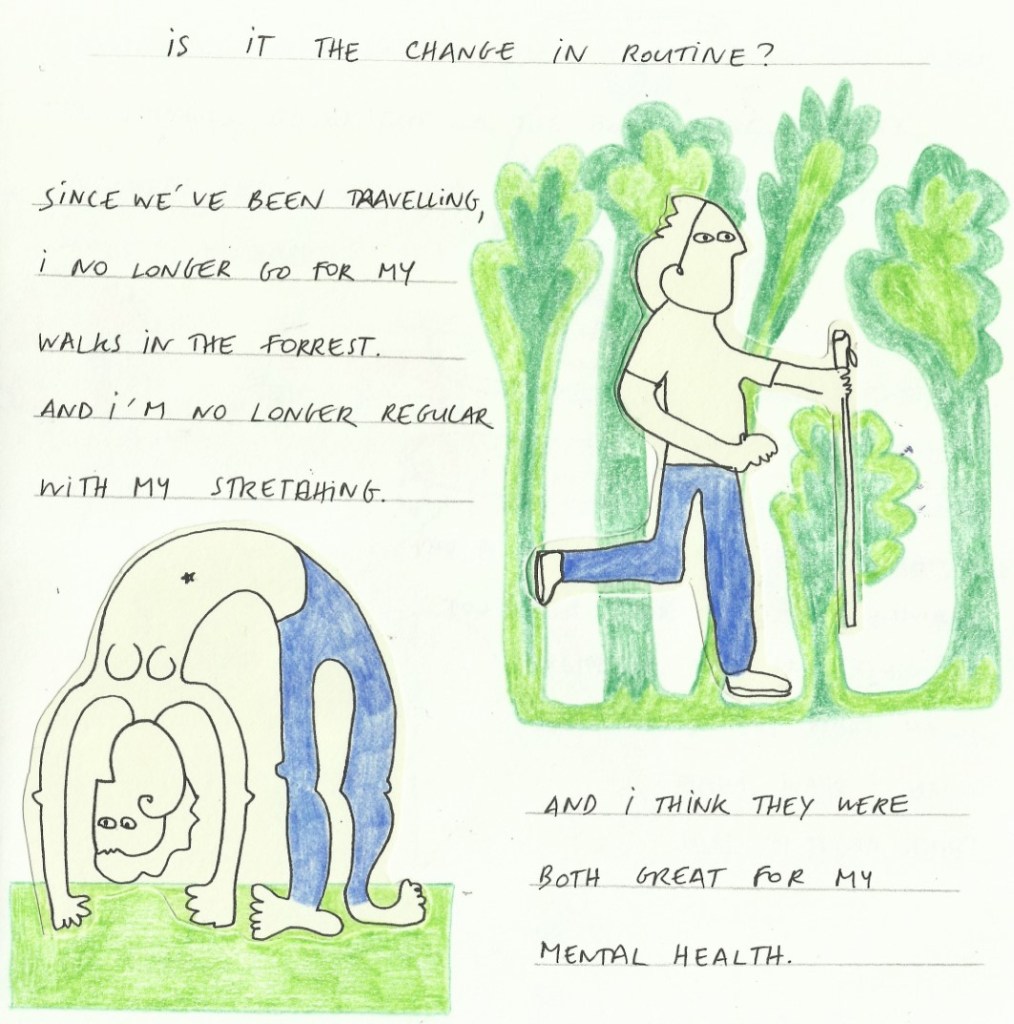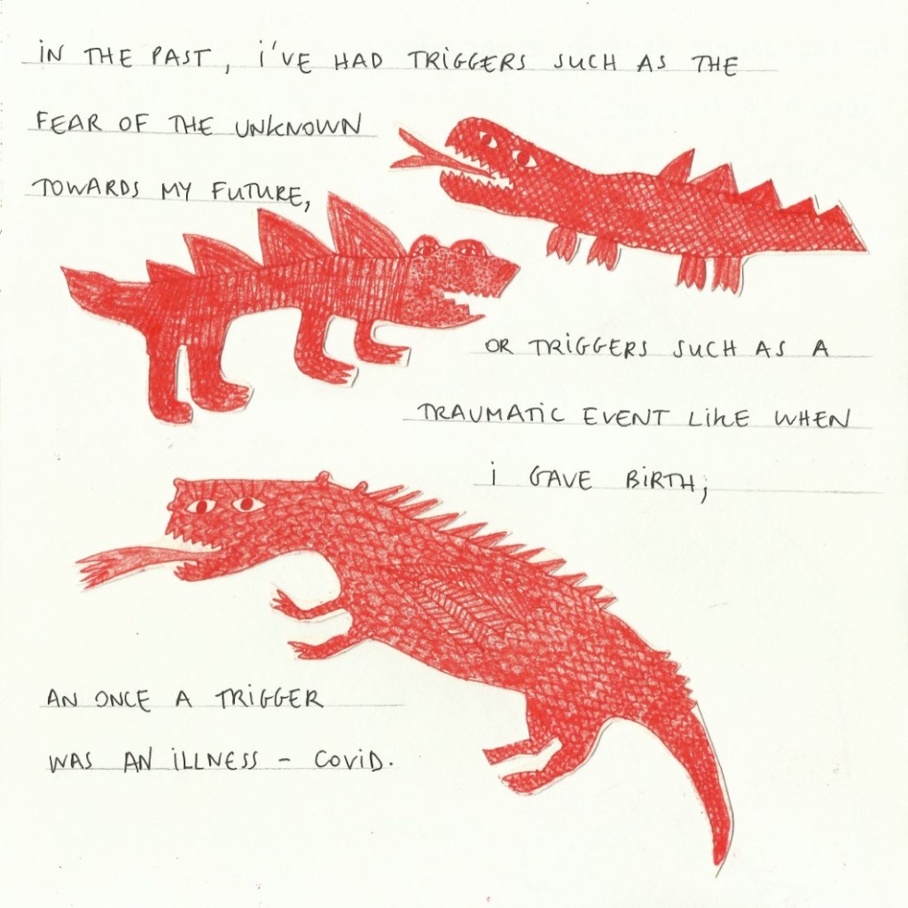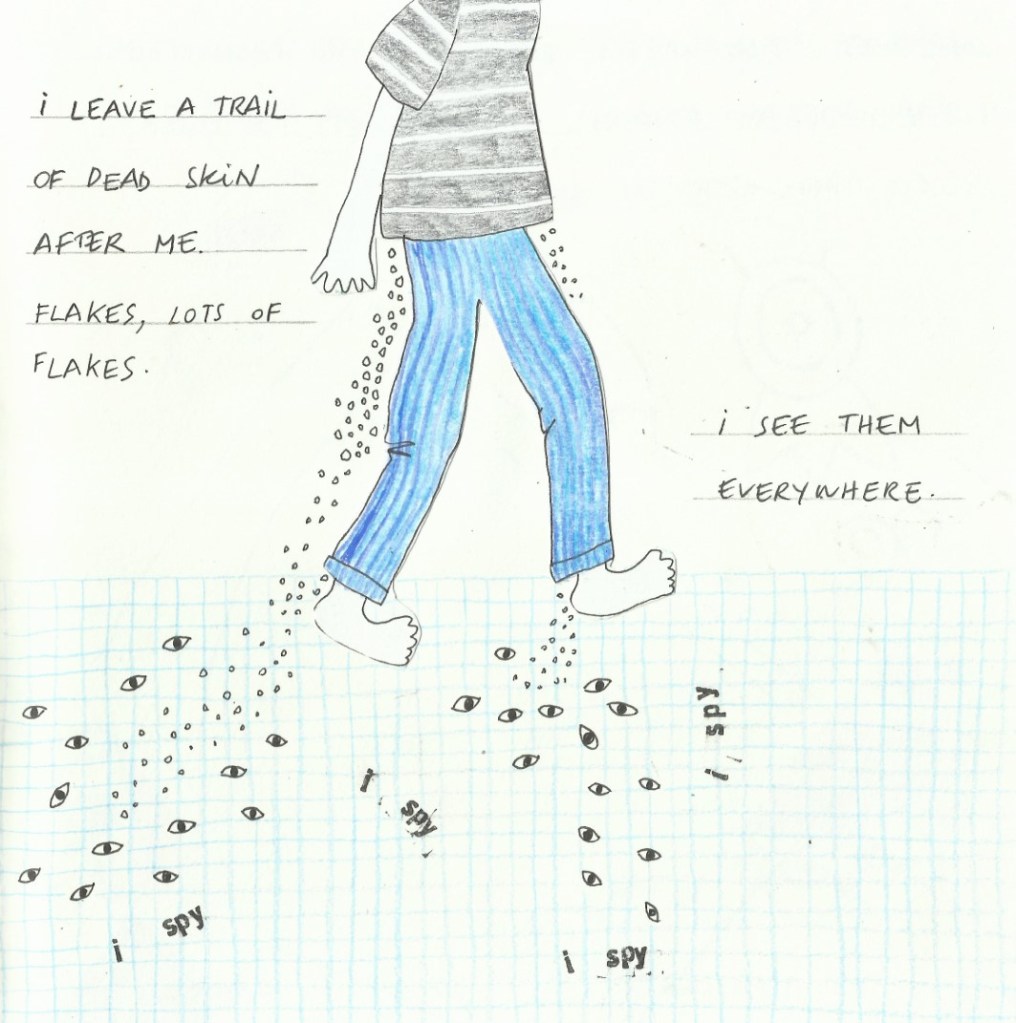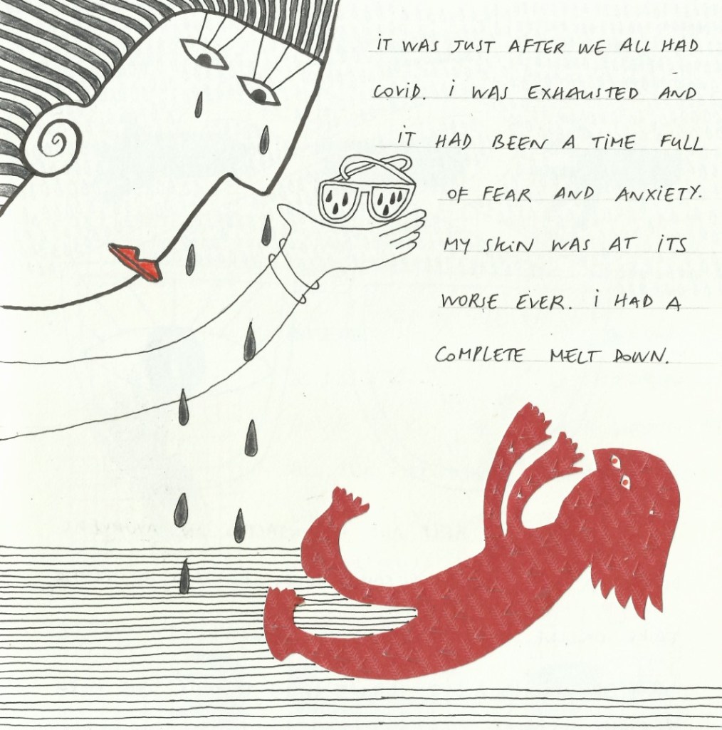 (2022) I start a graphic journal that I name Our Lady of Psoriasis, at a time of a serious flare-up after a long phase of steady improvement. This time, drawing did not seem to have an incidence on reducing the inflammation, however it was more bearable to live through it as I drew. The first pages address the feelings of psoriasis skin and the attempts to heal.