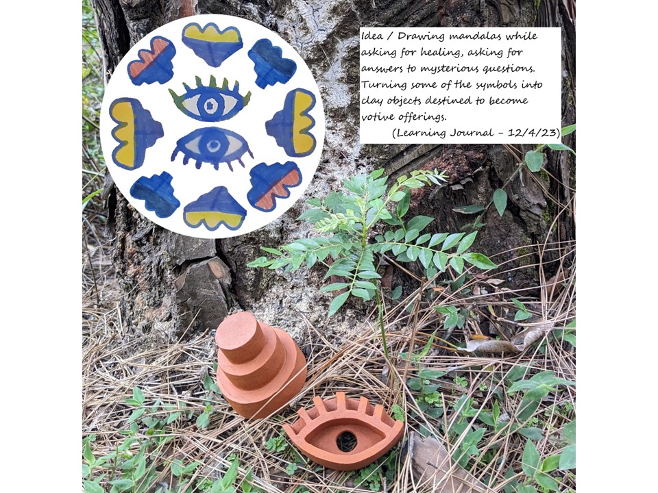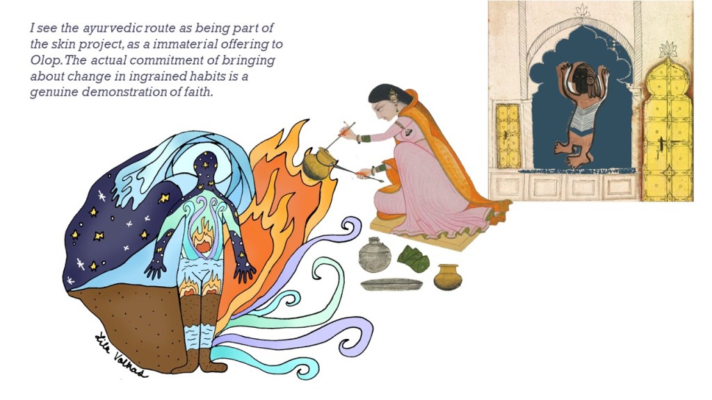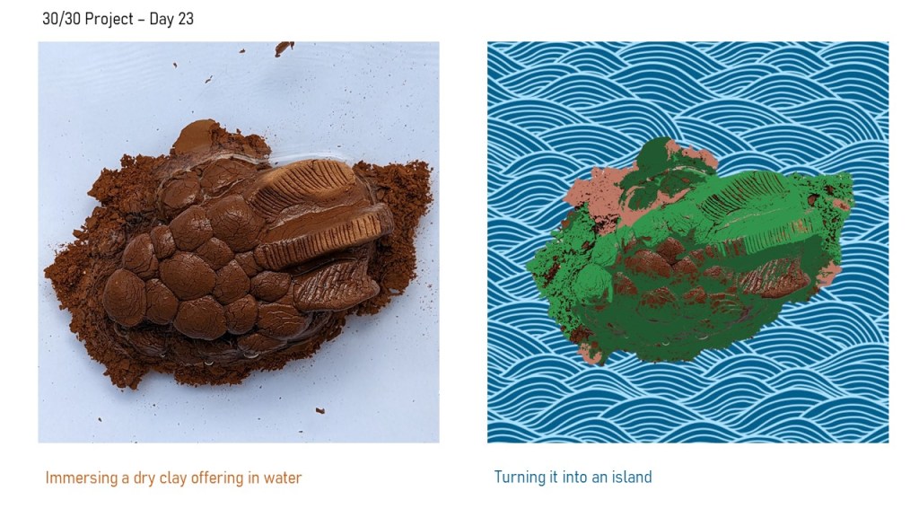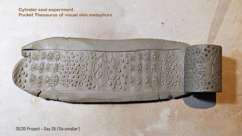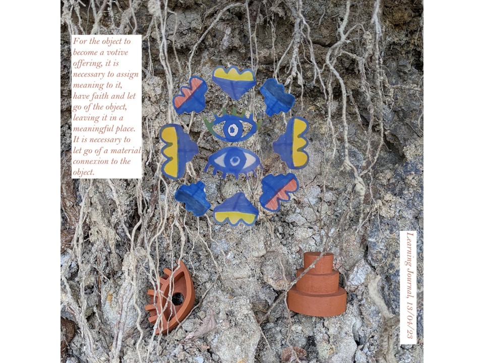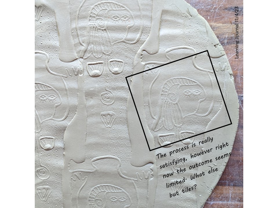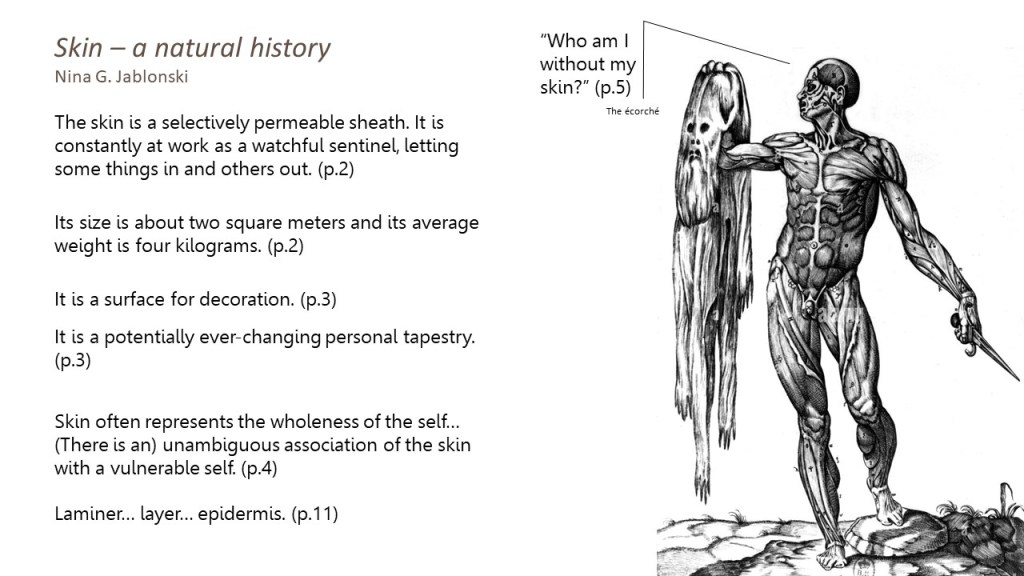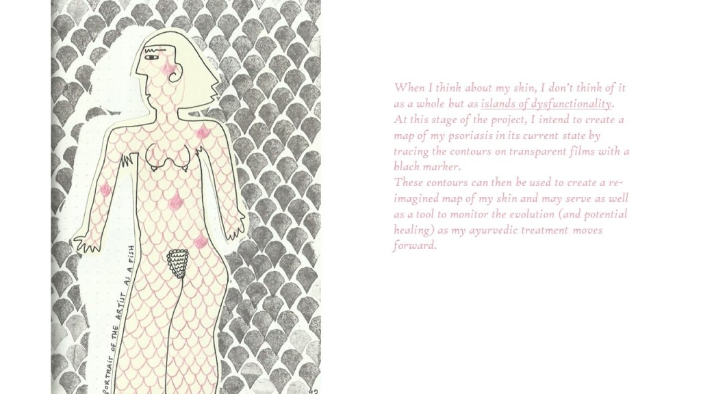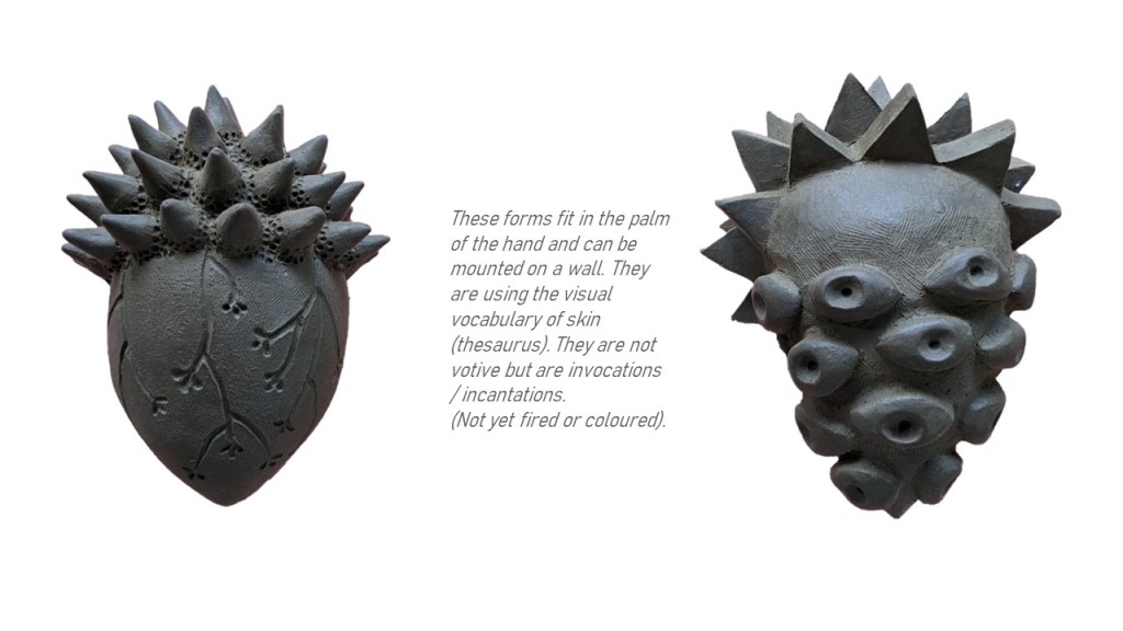 In April and May 2023, as part of my mentorship with Apurva, I start exploring new ways of documenting my work. I create learning journal entries on my computer, mixing images and text. I use analogue methods of working and basic software. These new ways of documenting allow me to record in a visual manner the progress I make with my work for The Skin Project. I often go through long periods of not being able to make work in the studio because of other commitments, but I am constantly thinking about it; so this new way of documenting allows me to keep present with my work.