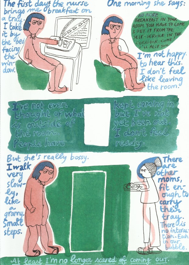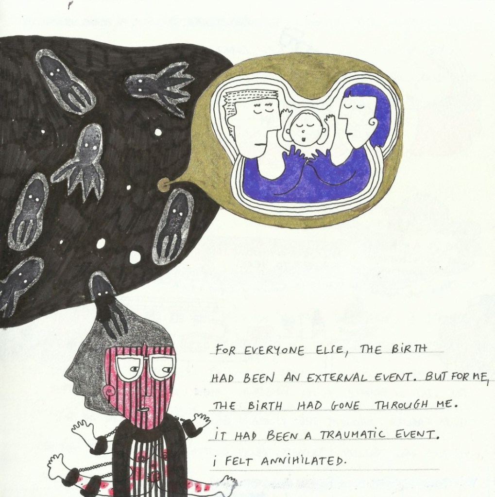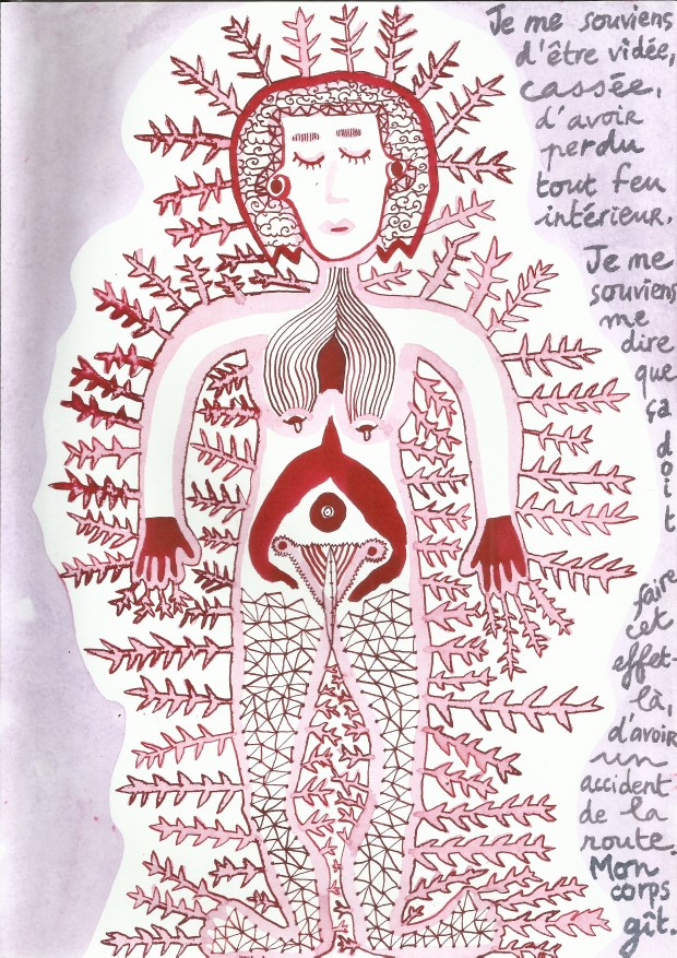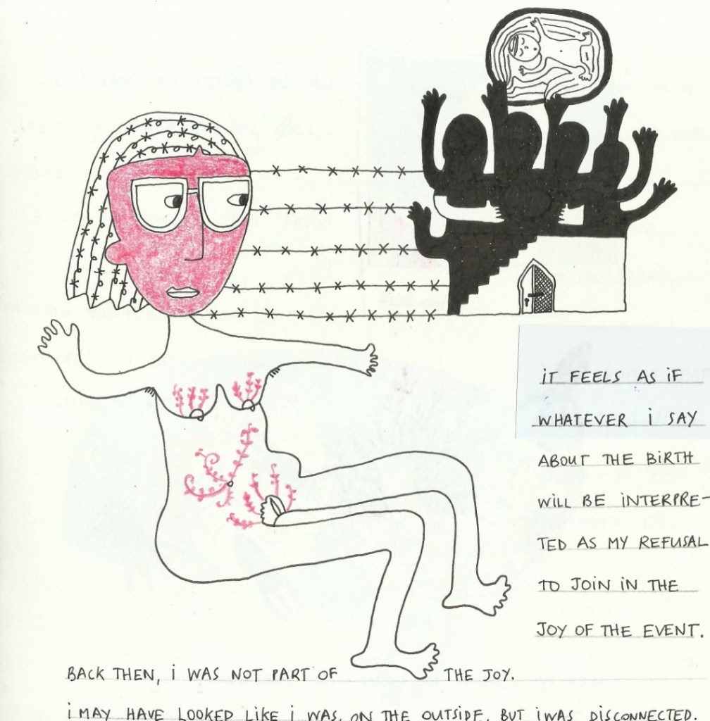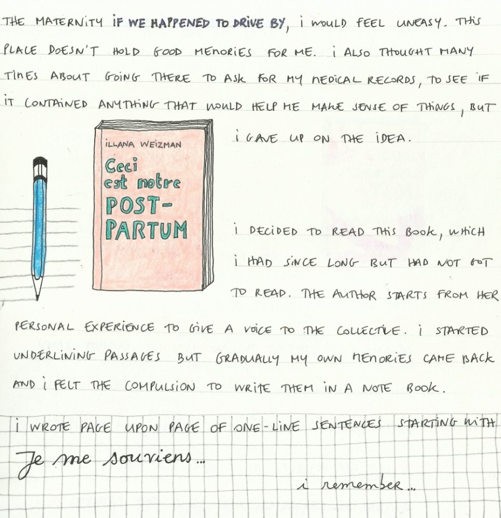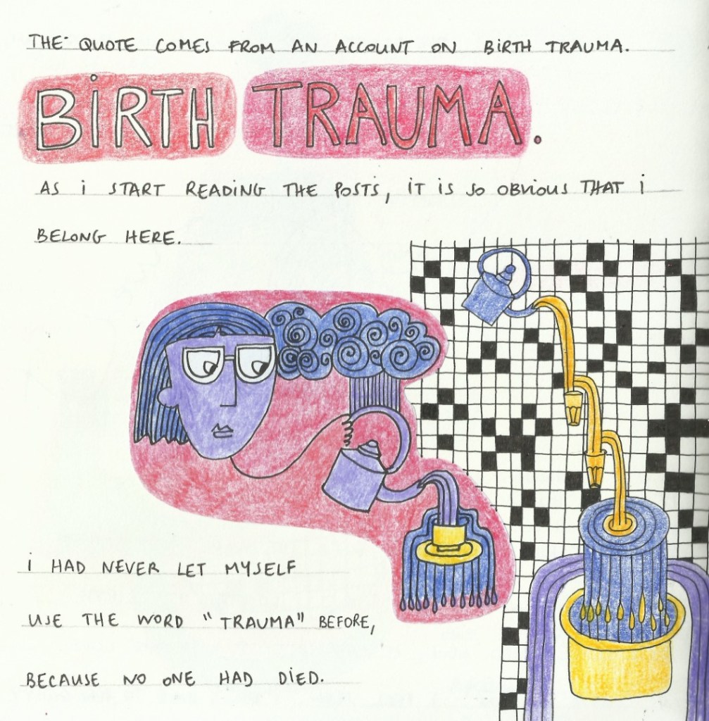 Since birth trauma happened, I have made, drawn and written about it in various places and formats, including the ceramics mural Postpartum (2018) and ink drawings in a series, still ongoing, called Post x Partum.